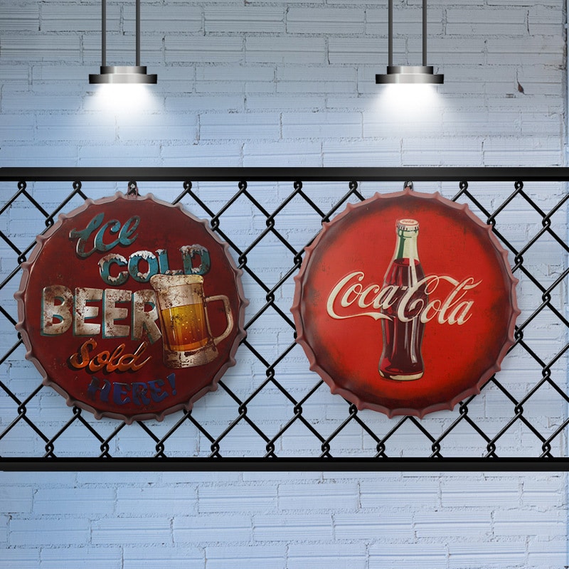 Large 35mm diameter durable man cave ornamental displayMan Cave Metal Bottle Cap Cold Beer Sold Here