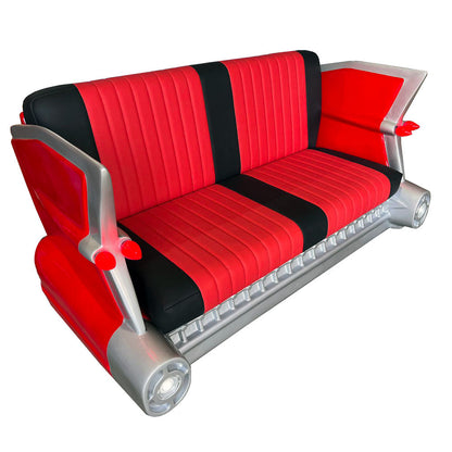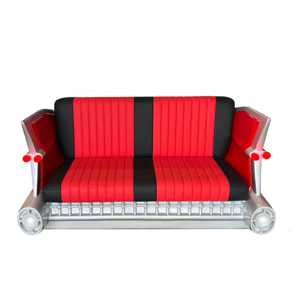The Classic Car Sofa Rear End is a full-size, handcrafted replica inspired by the iconic automotive designs of the 1950s and 1960s. Made with high-quality polyresin, fiberglass, and steel, this durable piece blends nostalgia with modern craftsmanship, making it a perfect centerpiece for any mancave, games room, office, bar, club, or restaurant.