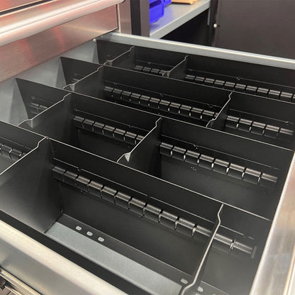 The R Drawer Dividers are a heavy-duty, adjustable drawer organiser, designed to optimise storage and organisation in your garage drawer systems. Made from durable steel, this versatile divider set allows you to separate large and small items, creating a customisable storage solution for tools, accessories, and hardware.