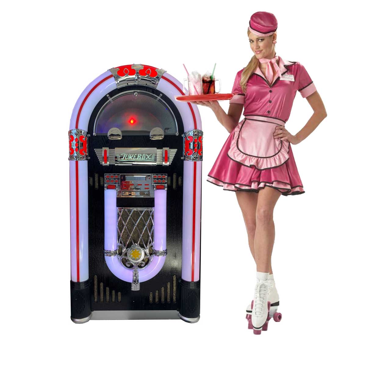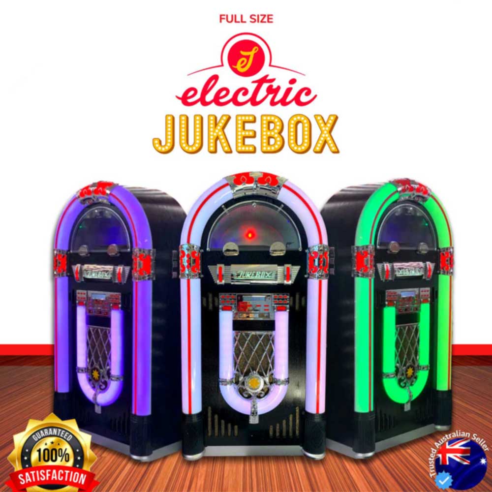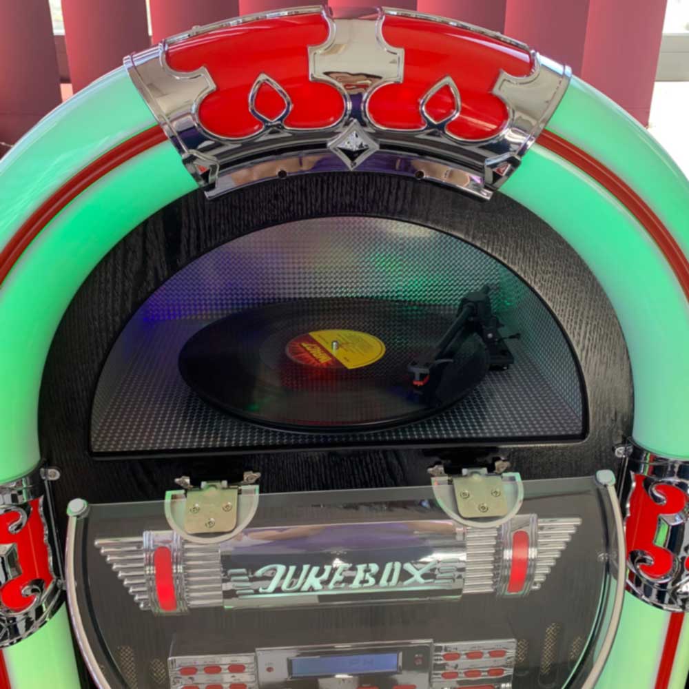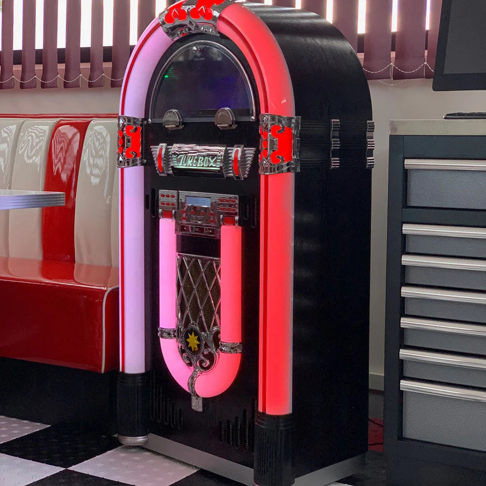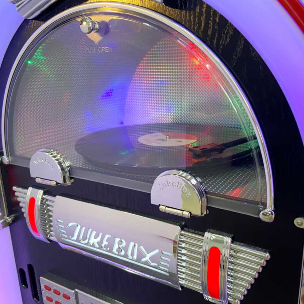 • Authentic Retro Jukebox Design – Classic 1950s-style jukebox with LED party lighting